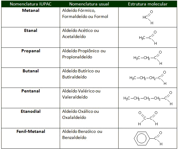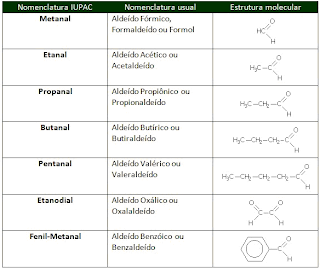 Alguns aldeídos possuem nomenclatura usual reconhecida pela IUPAC, embora alguns professores tenham certa resistência em aceitá-las oficiais: